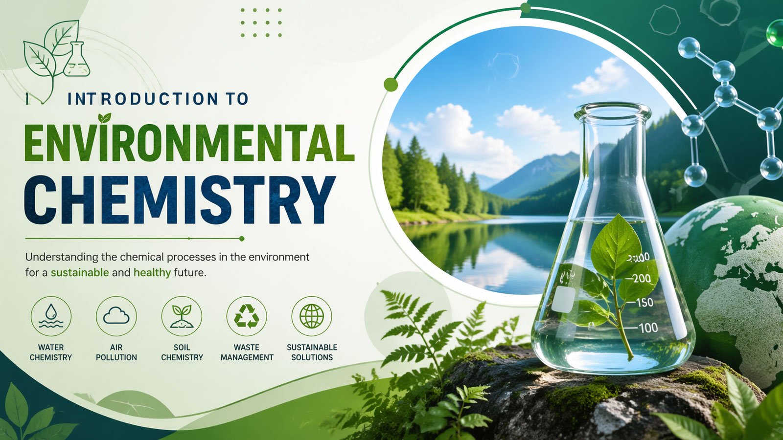 Environmental chemistry is a branch of chemistry that focuses on the chemical processes occurring in the environment, including natural and anthropogenic (human-induced) impacts on ecosystems, air, water, soil, and living organisms. It explores how chemicals move, transform, and interact in different environmental compartments and their effects on environmental quality and human health.